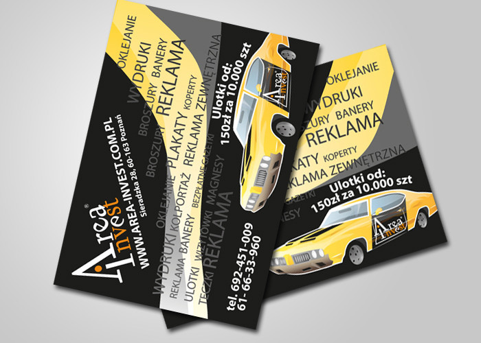 Proponujemy kompleksową usługę projektowania, wydruku oraz kolportażu ulotek lub kolportażu i wyklejania plakatów. Oferujemy najniższe ceny oraz sprawdzoną jakość. Istniejemy na rynku od 15 lat.